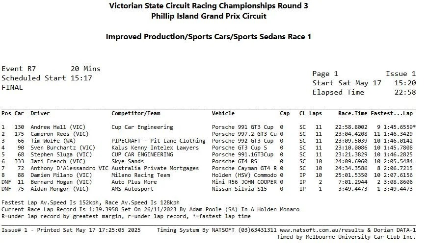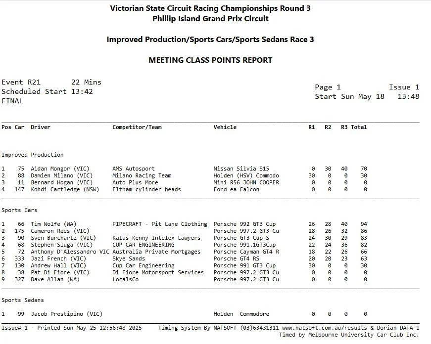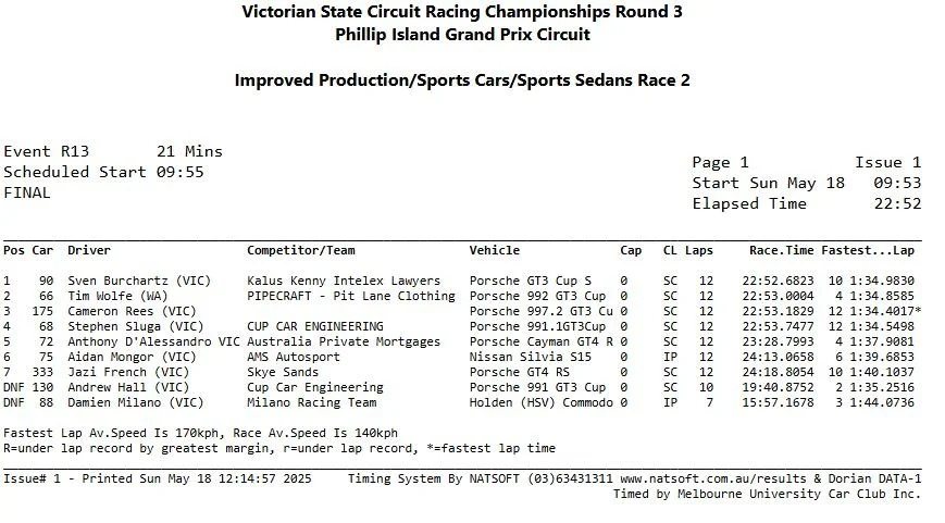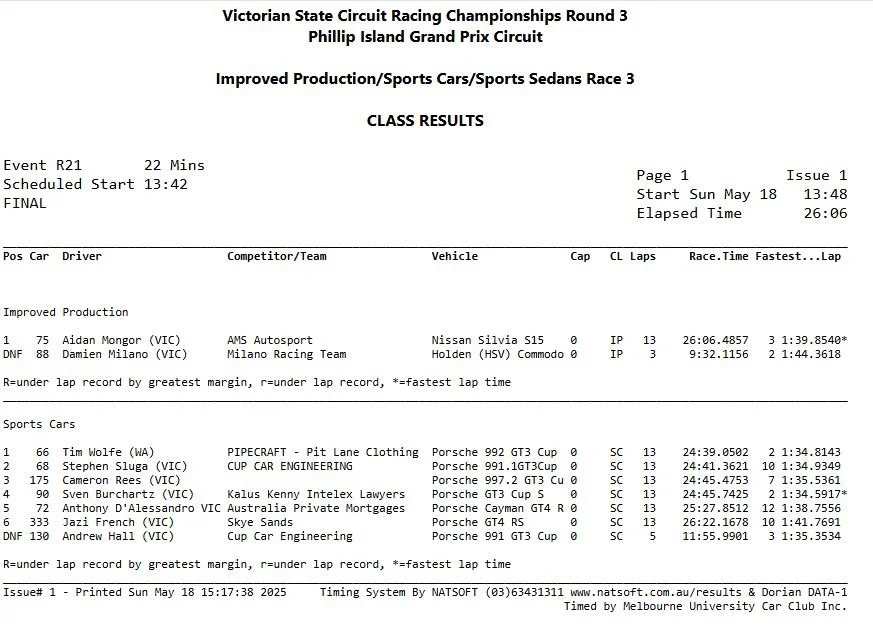 2025 Bathurst 6hr class winner Wolfe - driving the new Porsche 992 GT3 Cup car - took three podiums throughout the weekend and eventualy claimed victory in Race 3 as well.